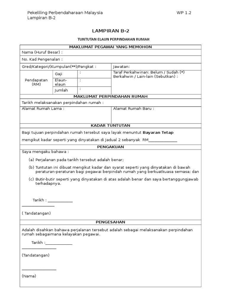 Borang Tuntutan Elaun Pindah Rumah Pdf